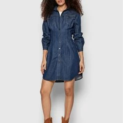 Sisley Γυναίκες Φορέματα σε Στυλ Πουκάμισο & Σεμιζιέ Φόρεμα τζιν 4HYRLV00O Σκούρο μπλε Regular Fit