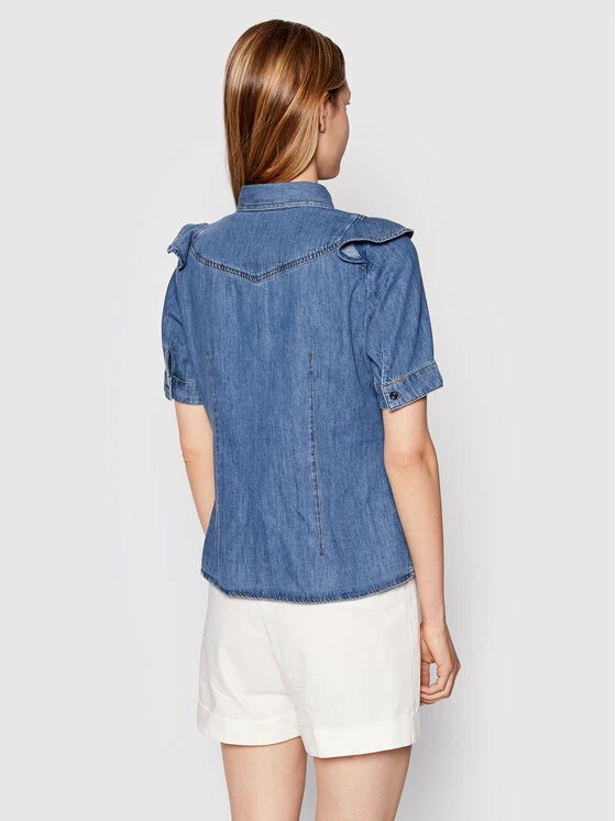Sisley Γυναίκες Casual Πουκάμισα Τζιν πουκάμισο 53Z3LQ00T Μπλε Regular Fit