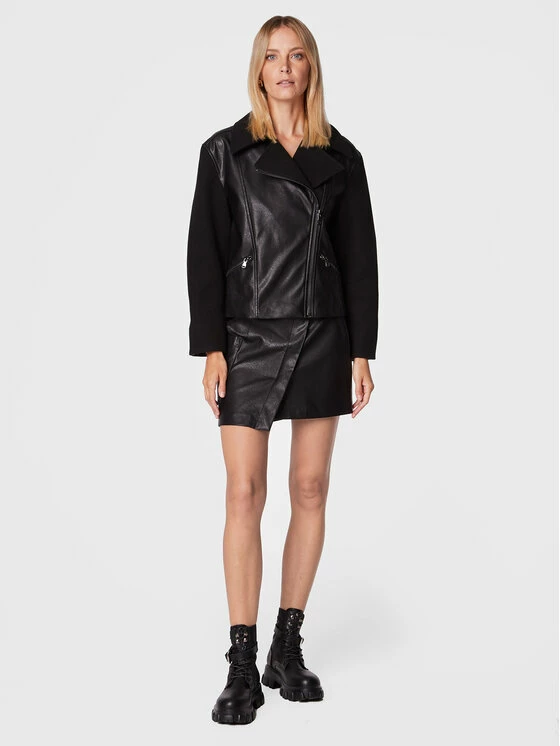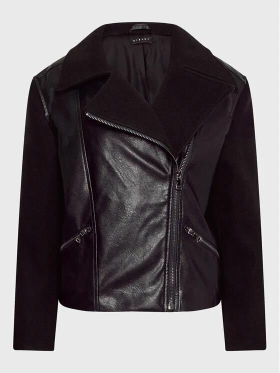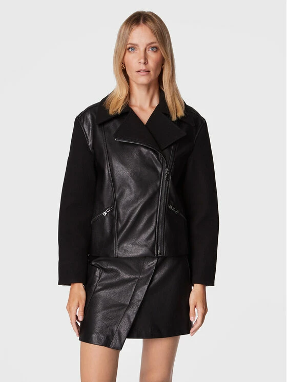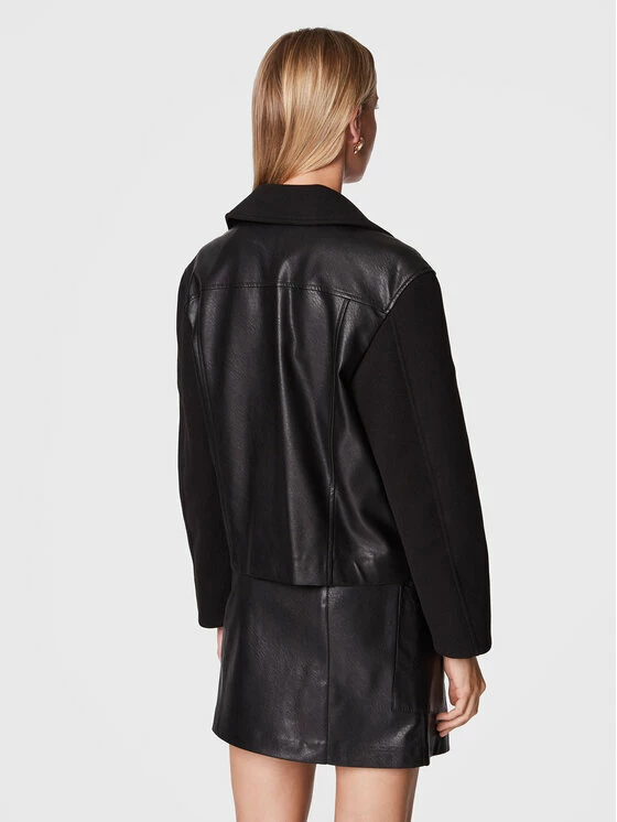 Sisley Γυναίκες Δερμάτινα Μπουφάν Μπουφάν από απομίμηση δέρματος 21DYLN014 Μαύρο Oversize