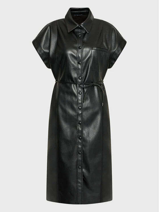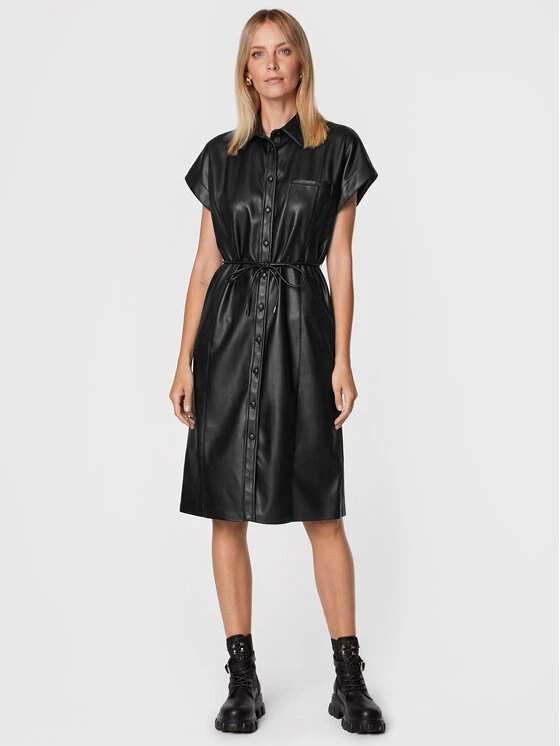 Sisley Γυναίκες Φορέματα σε Στυλ Πουκάμισο & Σεμιζιέ Φόρεμα από απομίμηση δέρματος 4MTMLV01Q Μαύρο Regular Fit