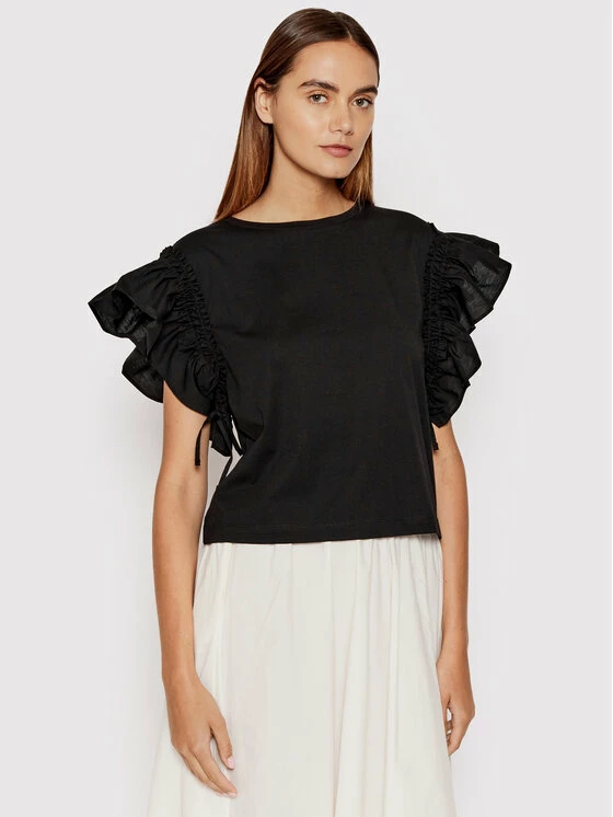 Sisley Γυναίκες Μπλουζάκια Μπλουζάκι 3AIRL101P Μαύρο Boxy Fit